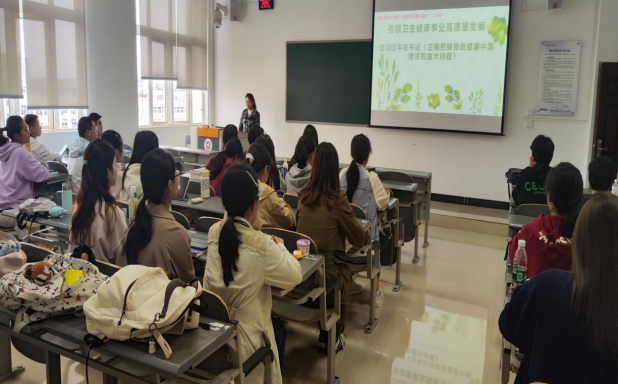 南山班辅导员李雪以“引领卫生健康事业高质量发展——读习近平总书记《正确把握推进健康中国建设的重大问题》”为主题开展了理论宣讲,带着同学们一起研读了习近平总书记《正确把握推进健康中国建设的重大问题》这篇重要文献,该文深刻剖析并强调了卫生健康事业的特殊性和坚持基本医疗卫生事业公益性的重要意义,指出了卫生健康事业高质量发展的方向,为全面推进健康中国建设提供了科学系统的理论指引和实践指导。作为医员工,要时刻加强政治理论学习,时刻牢记身上肩负的历史使命和时代责任。此外,还邀请在场医员工们讨论并分享了“作为医员工的我们,在卫生健康事业高质量发展中可以做什么?”同学们纷纷表示,要刻苦努力学好专业知识和技能,注重科学研究,把自己培养成为卓越的医学人才,为健康中国建设贡献智慧和力量。