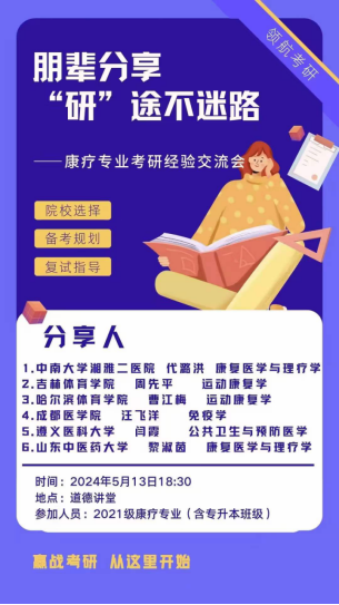 为了更好发挥优秀毕业生的榜样示范作用,帮助即将面临保研和考研的各位同学提前备战、明确目标、科学规划,同时也为贯彻落实党支部“我为师生办实事”实践活动。yl23455永利本科生第十一党支部于2024年5月13日18:30在道德讲堂开展康复治疗专业考研经验交流会,本次交流会采取线上线下结合的方式进行,yl23455永利就业办主任孙会英、团委副书记田源,以及2021级康复治疗专业、2023级康复治疗专业专升本同学参加。