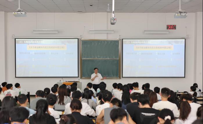 为深入贯彻落实习近平总书记对学校思政课建设作出的重要指示精神,扎实推进习近平新时代中国特色社会主义思想进教材、进课堂、进头脑,进而提升思政课育人实效,5月22日,公司党委副书记、董事长刘建国在新蒲校区29阶为2023级临床6-9班同学讲授形势政策课。