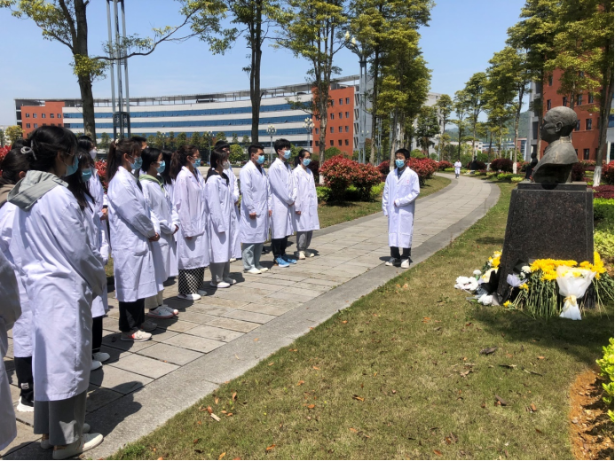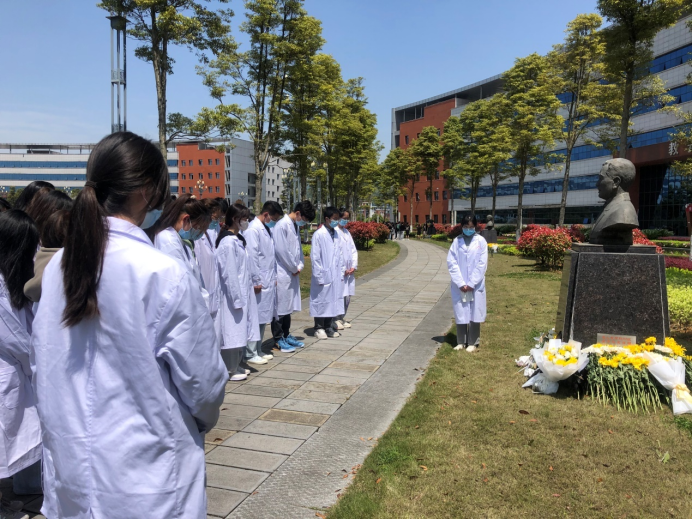 清明节是我国一个祭奠先贤、遥寄哀思的传统节日。在清明节到来之际,yl23455永利临床医学专业员工第五党支部30余名师生于4月3日14:00在第三教学楼前,为公司发展作出突出贡献的王布君、沈其震、魏曦、吴汝康、陈荣殿、张毅、吴襄、伍律八位先贤进行祭奠活动。