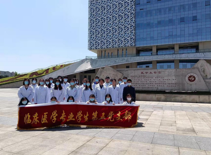 “医员工宣誓”。支部老师带领同学们来到图书馆门口的医员工誓言旁,同学们庄严地举起右手并宣誓“健康所系,性命所托……”,通过一句句庄严的医员工誓言,表达了遵医学子愿为祖国的医疗卫生事业奉献自己青春和热血的承诺。