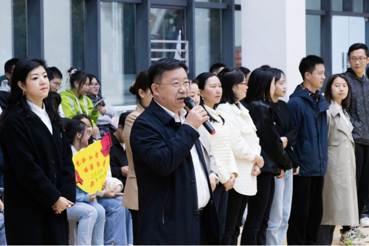 党的二十大报告指出,要“广泛开展全民健身活动,加强青少年体育工作,促进群众体育和竞技体育全面发展,加快建设体育强国。”为鼓励同学们积极投入全民健身活动,促进支部间的交流,增强团队凝聚力,展现新时代老员工积极向上的精神风貌,2022年第二届“阳光杯”迎新篮球赛于2022年11月3日在新蒲校区北区篮球场拉开帷幕,党委书记郑洪、党委副书记杨洪艳出席开幕式。