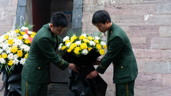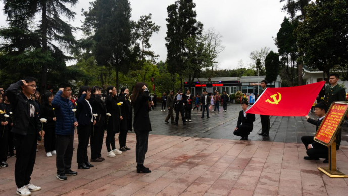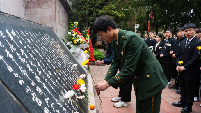 全体师生向烈士敬献鲜花