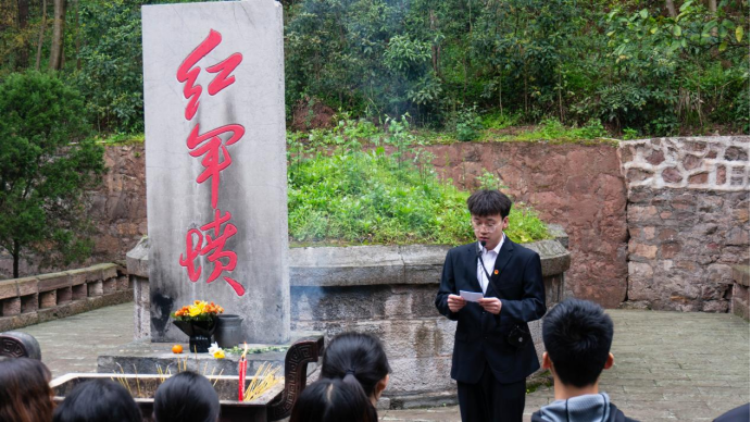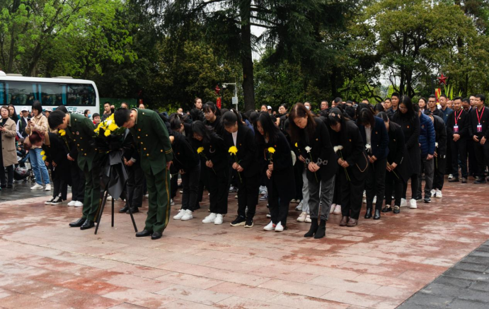 巍巍青山埋忠骨,赫赫功勋树丰碑。在庄严肃穆的红军山烈士陵园纪念碑下,员工代表沈鑫玉向逝去的革命先烈致缅怀辞,全体师生怀着无比崇敬的心情,通过敬献花篮、鞠躬致敬、集体默哀、瞻仰烈士墓碑等形式追思长眠地下的烈士英灵,表达对革命先烈崇高的敬意和深切缅怀。