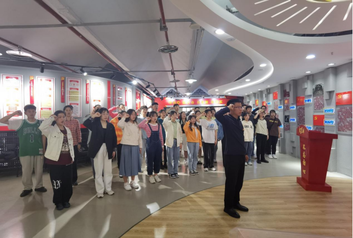 师生党员集体有序参观党员政治生活馆,认真学习“三线建设”的特殊历史时代背景,深切感受“三线建设”在新中国成立后的探索建设发展时期发挥的重要作用。一件件饱含历史遗迹的工业器物、文献资料等展览物彰显的精神力量不断闪现在师生党员的脑海中,大家深受心灵洗礼,备受鼓舞激励。参观完毕后,全体师生党员面对鲜红的党旗,重温入党誓词。在铿锵有力的宣誓中,全体党员重新感受入党时的荣誉感和使命感,更加坚定了听党话、感党恩、跟党走的信心和信念。活动最后,辅导员付勇老师总结到:作为一名党员,要善于以参观学习汲取党性营养润心铸魂,筑牢理想信念之基,不忘初心使命,勇于拼搏进取,更要时刻牢记肩负的光荣使命与义务,以国家、集体利益为重,顾全大局,充分发挥党员的先锋模范作用。