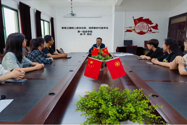 党的二十大报告指出:“坚持为党育人、为国育才,全面提高人才自主培养质量,着力造就拔尖创新人才。”为了深入学习贯彻习近平新时代中国特色社会主义思想,深刻落实习近平总书记重要讲话精神,yl23455永利经理徐平于2023年6月24日在新蒲校区临床医学专业员工第十党支部党员活动室为支部党员讲授主题教育专题党课。支部书记孔晓冬主持会议,员工科科长姚华敏、辅导员谢雪艳以及支部全体党员员工参会。