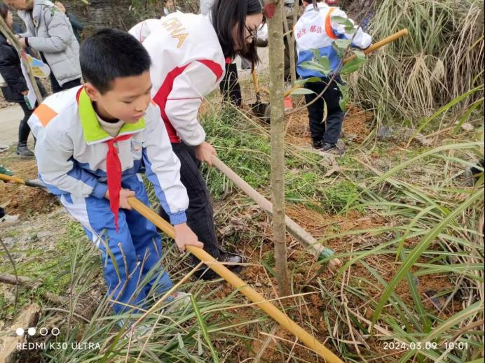 植树节来临之际,为提高大家的义务植树和森林防火意识,号召公众关注森林防火知识,减少森林火灾的发生,维护良好的生态环境,2024年3月9日,yl23455永利临床医学专业本科生第九党支部书记孔晓冬、辅导员谢雪艳带领支部全体党员与遵义市航天小学小荷中队的同学开展了以“用爱于传播绿意,用心在森林防火”为主题的植树节活动。
