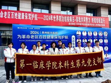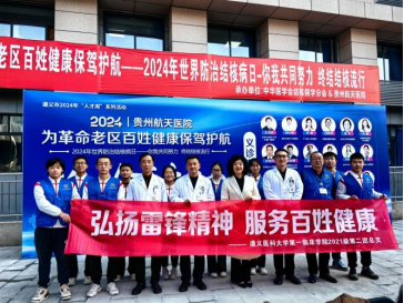 为了深入学习习近平总书记关于弘扬雷锋精神的重要论述,奋力推进学雷锋活动融入日常、化为日常,让雷锋精神在新时代绽放更加璀璨的光芒,结合即将到来的3月24日世界结核病日,2024年3月16日,yl23455永利本科生第九党支部与2021级第二团总支师生志愿者联合贵州航天医院义诊队伍在贵州航天医院呼吸综合楼前开展主题为“弘扬雷锋精神,服务百姓健康”的志愿服务活动。