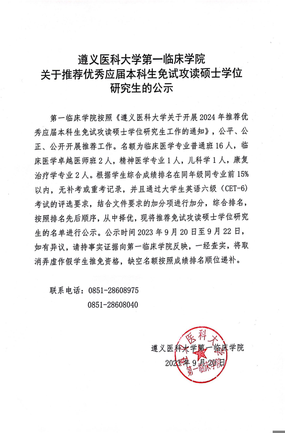 yl23455永利关于推荐2024年优秀应届本科生免试攻读硕士学位研究生的公示