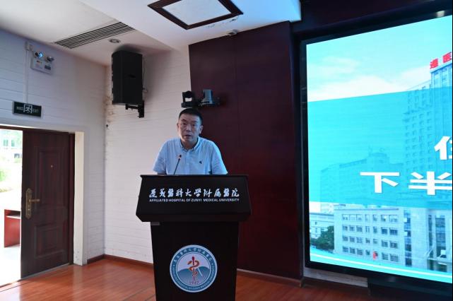 最后,遵医附院经理、住培基地负责人余昌胤作重要讲话。他对住培工作十余年来取得的成效予以肯定,对首次国家级住培评估提出五点建议:一是提高重视,十余年来,公司在住培工作上投入了大量的人、财、物,接受了各级的检查,培养了一批又一批的住培医师,希望管理者,带教老师更加重视住培医师,珍惜现在取得的成效,坚守责任,做好公司产品工作。二是明确目标,深入学习并准确把握国家及地方关于住院医师规范化培训的政策文件、培养标准与评估指标要求,制定详细的自查清单,明确每项工作的责任人、完成时限及质量标准。三是强化过程管理,各专业基地要实施精细化管理,完善学员考勤,学习记录、教学活动、出科评价及考核等日常管理资料,确保培训过程可追溯、可评估。注重人文关怀,关注住培学员的身心健康,强化职业道德与职业素养,培养学员的责任感、使命感和团队协助精神。四是加强协作,希望规培科给与各专业基地、各科室在材料准备过程中相应的指导和解释。各专业基地之间、各科室之间多交流协作,促进资源共享与经验交流,共同提高住培工作水平。五是及时反馈,希望各专业基地、各科室把现有的资料进行完善、欠缺的内容抓紧充实,有问题及时反馈解决,各部门加强沟通与配合,力争在此次国家评估中取得优异成绩,继续公司在全省住培工作中的领先地位。最后,希望通过此次评估,不断完善,不断提升公司住培工作。