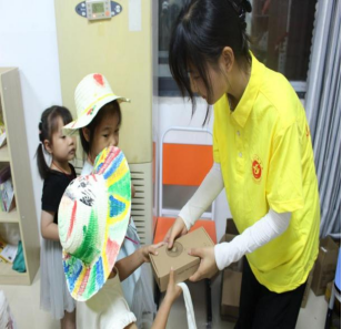 志愿者组织小朋友做手工