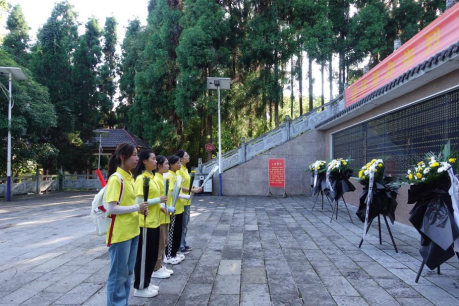 忆革命先烈,传红色精神。绥风飘阳实践队首先走进了绥阳烈士陵园,这里是绥阳县人民群众缅怀革命先烈、弘扬长征精神和爱国主义教育基地的重要纪念地,里面陈列着绥阳革命老区的历史和烈士名录。烈士陵园内松柏蓊郁,庄严肃穆,烈士纪念碑高耸入云,气势恢弘。实践队员默哀致敬,他们怀着崇敬的心情向英勇献身的革命烈士献上鲜花,缅怀追忆烈士们的忠魂和壮举,寄托对烈士的无限哀思和敬仰之情,在珍贵的革命资料前,他们再一次重温长征路线,了解绥阳县红色革命历史,品读革命志士的信仰,深切感受革命先烈的崇高精神,与先烈们开启一场时空对话,青山埋忠骨,山河念英雄,传承红色文化,革命烈士永垂不朽!