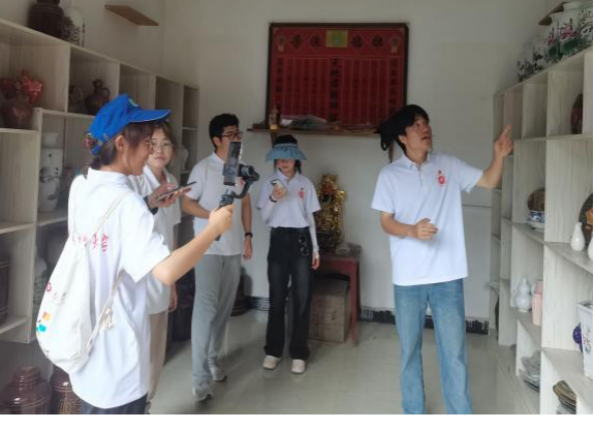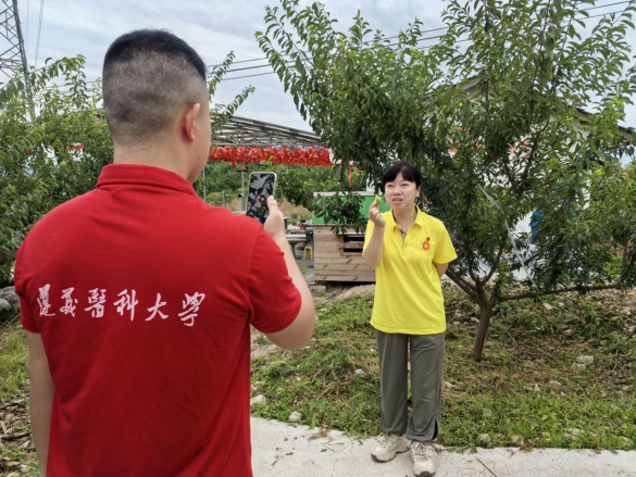 调研发展成就,直播助力振兴。在花茂村、团结村与松源社区,实践队员通过访谈等方式,调研经济发展情况,了解群众生活状况。在花茂村,实践队员通过抖音直播的方式对当地陶艺文化与陶艺产业进行了宣传与陶制品直播带货,直播过程中,花茂村党支部书记彭龙芬对花茂村旅游以及陶艺发展历史进行了宣传与推介,共计1266人观看,获6.9万点赞。在松源社区连心水果基地,实践队员通过抖音对水果基地进行了宣传并帮助基地进行直播带货,销售李子和黄桃,共计3188人线上观看,获4.1万点赞,两场直播,有效拓宽了相关产品的宣传与销售渠道,助力了乡村振兴。