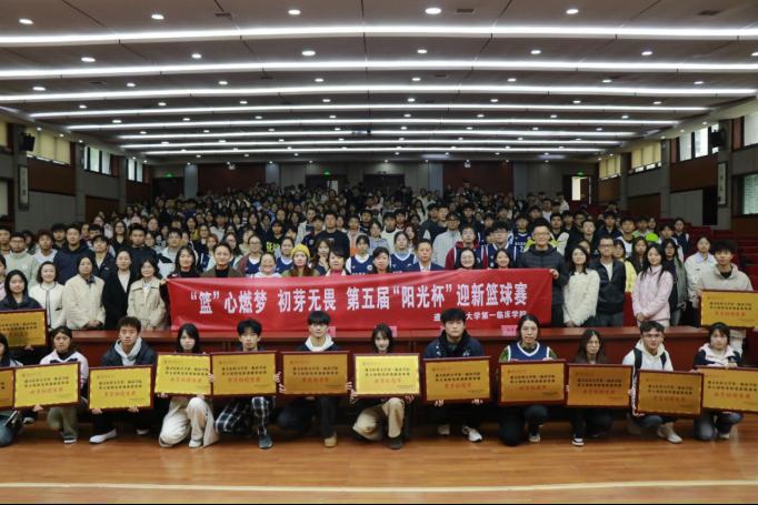开幕式上,主持人宣告赛事采用交叉淘汰赛制,由十二支部、十三支部、十四支部、十五支部、十六支部、十七支部以及全科医学院等多支新生队伍参与的迎新篮球赛正式开始。由运动员代表昂首登台,紧握右拳庄严宣誓,待神情严肃的裁判一声令下,球员们似热血沸腾的追风者,于赛场上奋发。抢断时的敏捷迅猛,传球时的默契无间,投篮时的专注果敢,得分后的呐喊尽显少年意气,汗水浸透球衣却浇不灭热情,场边观众的呼喊更是将这次智与谋,勇与韧的热血竞技推向另一个高潮。从小组对抗赛的初露锋芒,到淘汰赛的激烈交锋,再到决赛的巅峰对决,每一场比赛都令人心潮澎湃!