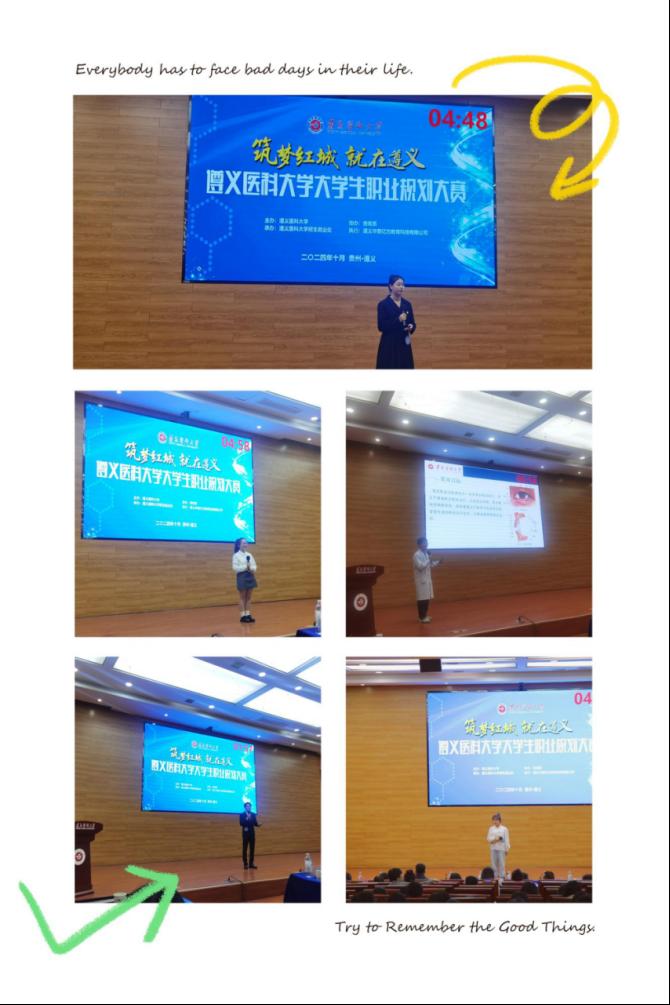 此次比赛分为预赛和决赛两个部分,预赛在院系自行组织,公司预赛得到了学院各位老师的大力支持和帮助尤其校关工委才秀莲老师的悉心指导。参赛的24位选手从自我评价、职业认知、实施计划、评估与备选等方面介绍自己的职业生涯规划,表现优秀的5名同学代表临床学院参加校级决赛。他们冷静从容,认真专注,体现了对未来的美好向往,更体现了临床学子积极向上的精神面貌。