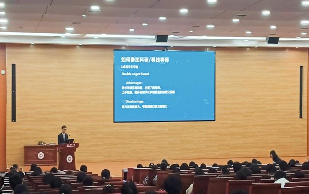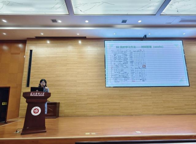 活动中,2023级张丹凝、吴冰、赵乐驰依次进行经验分享。张丹凝同学围绕学习方法,大学思考与行为方式两个方面展开,涵盖大学规划、习惯养成、课前预习和课后复习等方面,贴近生活,实用周到。吴冰同学分享了四六级的考试流程、试卷组成和考纲要求以及考试中需要注意的要点、做题的技巧。赵乐驰同学则分享了关于大创项目以及学科竞赛的相关内容,就保研夏令营的解读、如何寻找大创导师、如何结合自身兴趣涉足科研做了全方位的剖析。