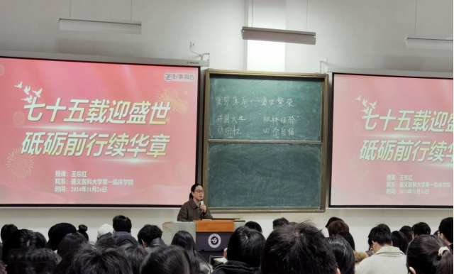 为进一步贯彻落实《教育部关于加强新时代高校“形势与政策”课建设的若干意见》精神,落实习近平总书记对学校思政课建设做出的重要指示,切实推进习近平新时代中国特色社会主义思想走进课堂,提高“形势政策”课程质量,2024年11月26日,yl23455永利党委副书记(主持工作)、经理王东红在新蒲校区21阶为2022级临床22班至25班同学讲授形势政策课。