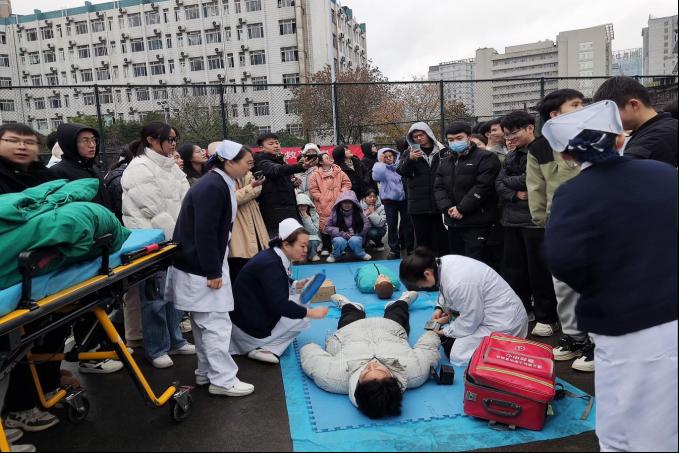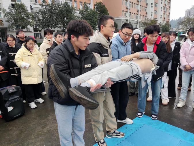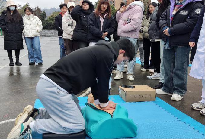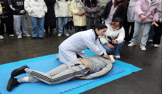 日常生活中,意外事件的发生随处可见,其中心脏骤停、气道异物、意外创伤的发生率较高。但我国120急救车到达现场的响应时间约为10-20分钟,对于心脏骤停患者,在生命系于千钧一发之际,急救知识显得尤为重要。因此对于医员工而言,急救技能的学习和培训至关重要。2024年12月10日15:00由yl23455永利博爱员工社区笃学公寓、娄山公寓主办,yl23455永利本科生第九党支部和yl23455永利礼智信辅导员工作室承办的“急时守护,救在身边”情景模拟急救演练活动在大连路校区篮球场开展。yl23455永利附属医院急诊科刘安平博士带领急救团队模拟了在公共场合遇到晕倒患者时,作为医护人员应如何迅速有效地进行急救。200余名员工参加了培训。