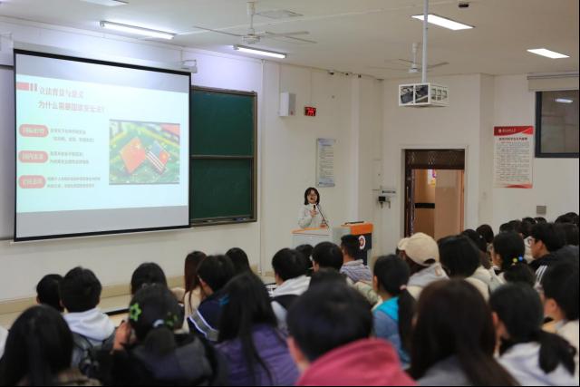 活动之初,由员工代表王月从立法背景与意义、法律框架与核心内容、公民日常生活关联、公民责任与义务等四个方面为现场师生详细解读了《中华人民共和国国家安全法》。随后进入国家安全知识竞答环节,同学们摩拳擦掌,抢答过程热火朝天,充分体现了同学们主动关心国家安全,自觉履行公民义务的优良作风。最后由李晓琴老师进行总结,嘱托在场师生要时刻保持高度的责任感和使命感,要将国家安全与个人发展紧密联系,以实际行动守护国家安全。