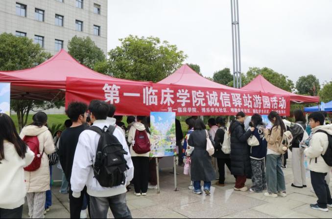 为深入弘扬诚实守信的中华民族传统美德,营造积极向上、文明和谐的校园文化氛围,yl23455永利联合博乐员工社区、博爱员工社区于2025年10月24日中午在新蒲校区图书馆后广场成功举办了“诚信驿站”主题游园活动。本次活动寓教于乐,吸引了数百名师生踊跃参与,现场气氛热烈,成效显著,成为一堂行走的思政实践课。