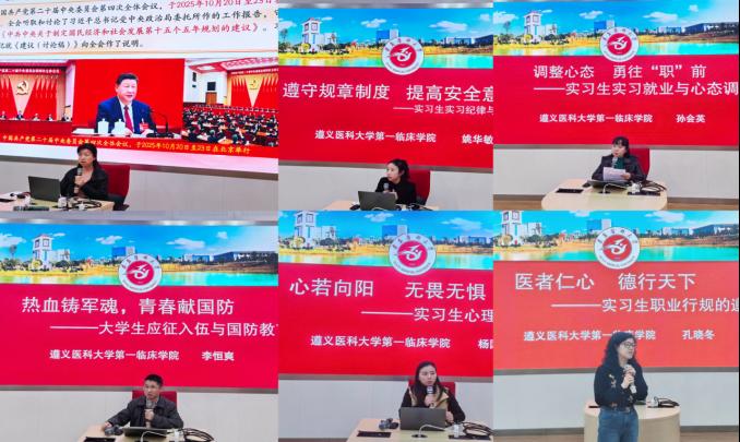 聚焦员工,开展综合教育,筑牢发展根基。针对实习、见习阶段员工的特点和需求,工作组在各医院集中组织了面向全体实习员工及“3+2”联合培养员工的系列主题教育活动,内容涵盖多个方面。一是安全教育警钟长鸣:结合医疗环境与都市生活特点,重点强调了医疗安全、人身安全、财产安全、消防安全、交通安全以及预防网络诈骗等,要求员工严格遵守医院规章制度和操作规程,增强自我保护意识,防范各类风险事故。二是就业指导精准施策:老师们分析了当前的就业形势与政策,介绍了求职流程、简历制作、面试技巧等实用知识,并对基层就业项目、规培政策等进行了宣讲,引导员工树立正确的就业观、择业观,提前规划,积极准备。三是职业规划引领未来:通过案例分析、互动交流等形式,帮助员工明晰职业发展方向,理解终身学习的重要性,鼓励他们在临床实践中不断探索个人兴趣与专业潜力,为未来的专科发展或进一步深造做好铺垫。四是征兵宣讲激发热情:详细解读了国家老员工征兵优惠政策、入伍流程及在部队的发展前景,激发了部分员工的参军报国热情,鼓励符合条件的同学投身国防,实现人生价值。五是心理健康关怀备至:关注实习、见习期间员工可能面临的心理压力和适应性问题,介绍了有效的压力调节和情绪管理方法,提供了学校心理支持渠道,引导员工保持积极乐观的心态,顺利度过实习关键期。六是职业行为规范强化:再次强调了医德医风和行为规范的重要性,要求员工恪守职业道德,尊重患者隐私,维护医学的圣洁与尊严,树立良好医者形象。
