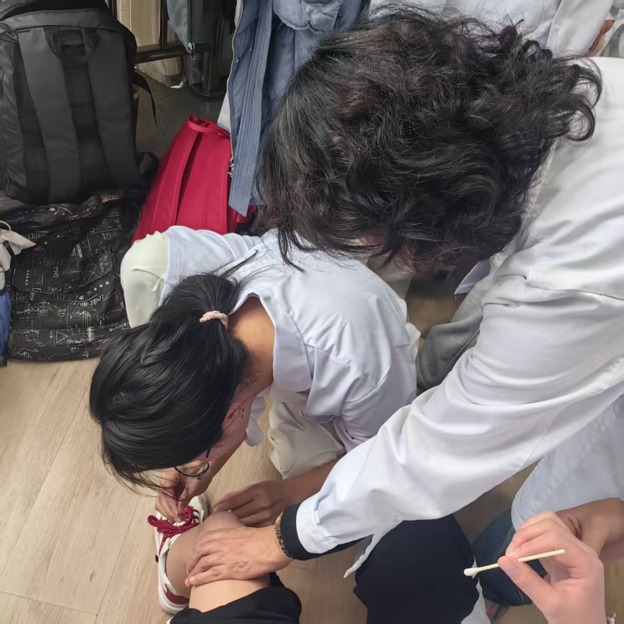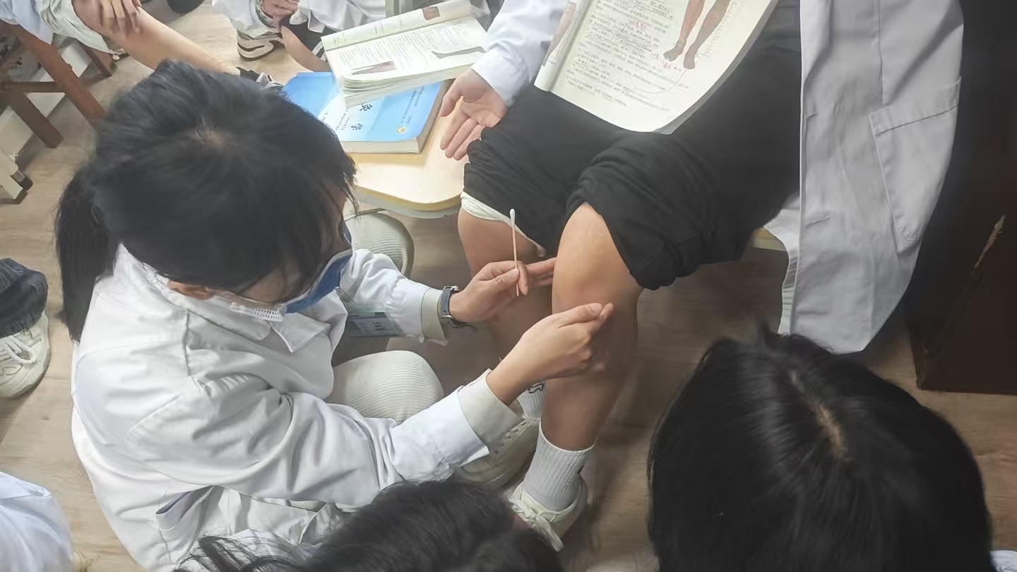 课程期间员工以小组为单位,在各个见习点老师指导下进行针刺练习。
