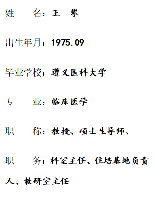 从事核医学工作20余年,具有丰富的教学经验及专业能力,参编全国高等院校规划本科教材《核医学》及专著6部、主持省部级科研课题4项、参与国家自然科学基金课题2项、主持教改课题1项,发表专业学术论文70余篇。主持核医学新技术新项目20余项,其中多项技术填补贵州省内空白。获批专利9项,软件著作权1项。培养毕业硕士研究生10名。多年来一直承担核医学课程本科授课。曾获贵州省卫生厅 “省级青年岗位能手”、遵义医学院优秀教师、yl23455永利优秀共产党员、遵义市优秀医师、中国影响力医生等称号。
